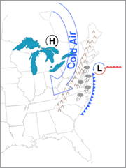 Nor'easters are storms that move north up the East Coast of the United States. Although